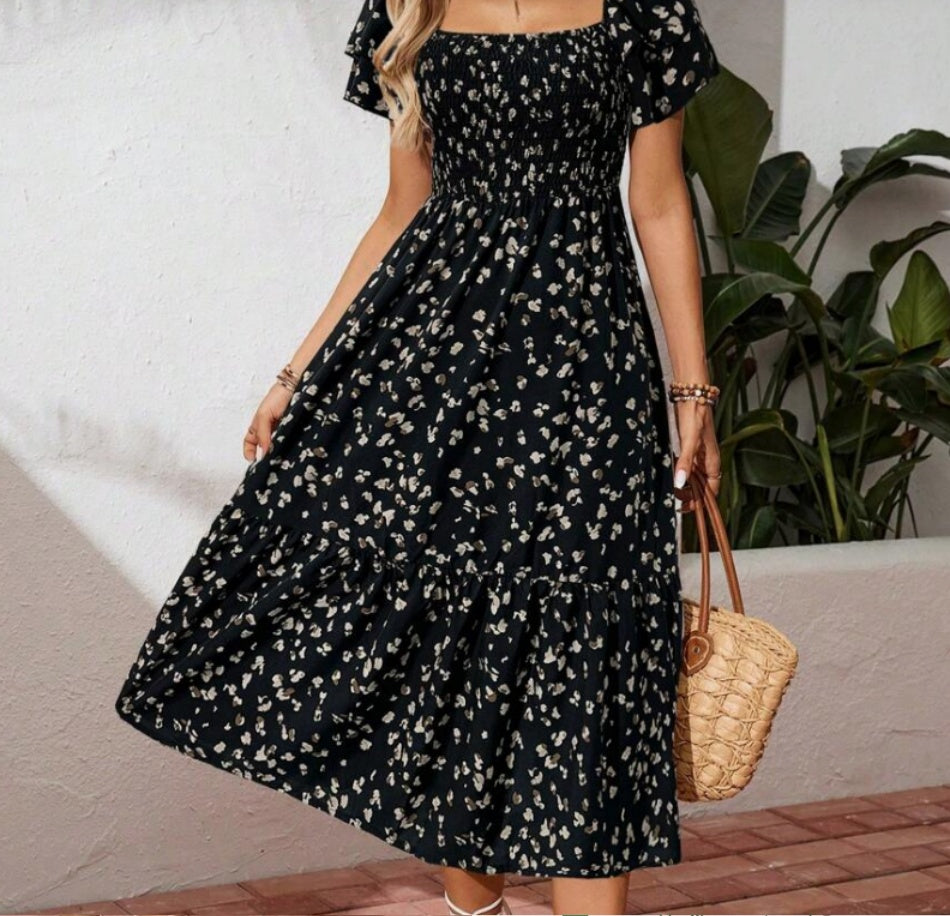 Summer Print Halter Ruffle Dress For Women